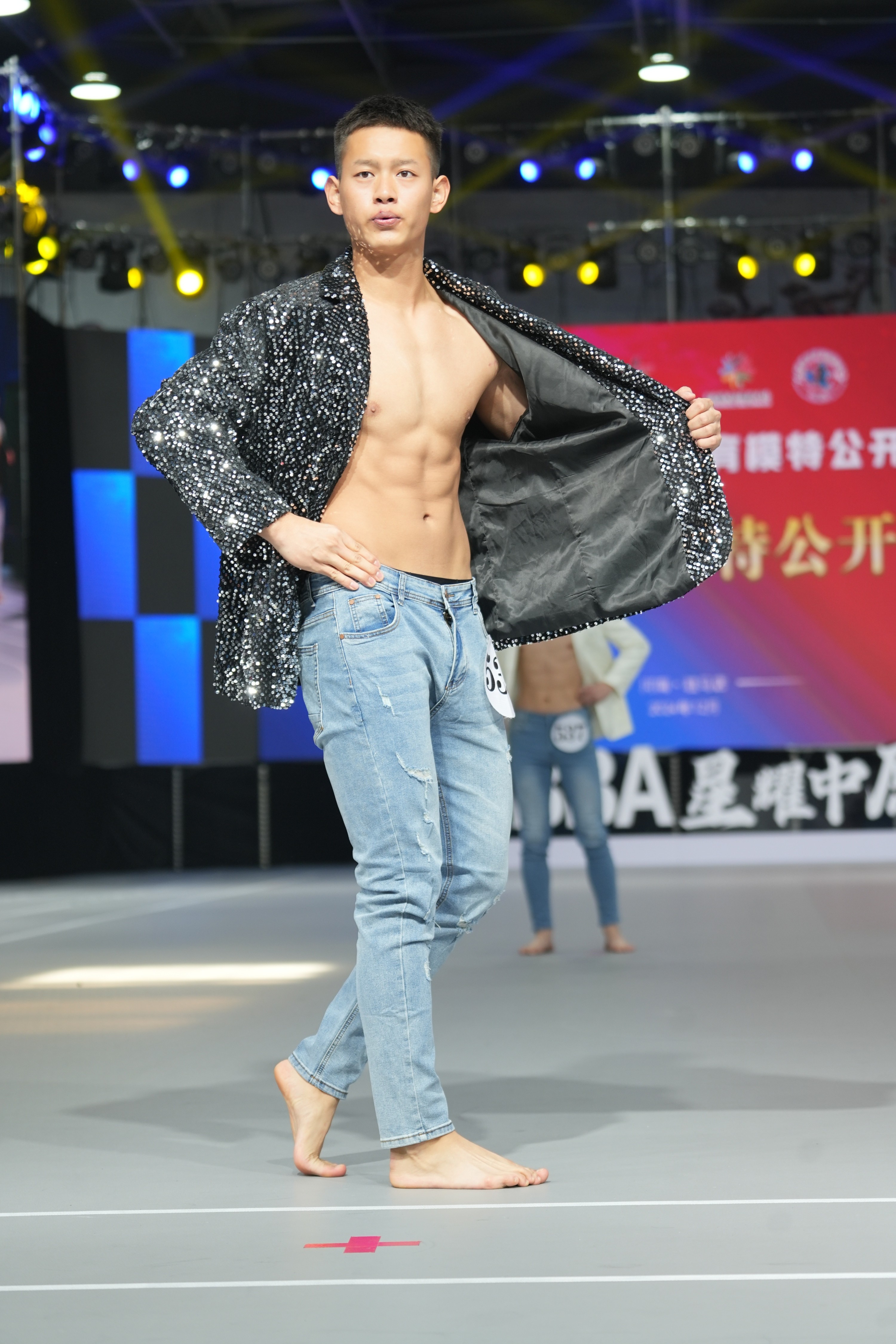 我校的运动健儿们在体育模特参赛过程中表现得非常自信,在赛场上展现了自己健美的身材和优雅的走秀技巧,无论是动作的流畅性、节奏的把握,还是表情的管理,他们都表现得游刃有余,使得他们在众多参赛者中脱颖而出,成为了赛场上最耀眼的明星。