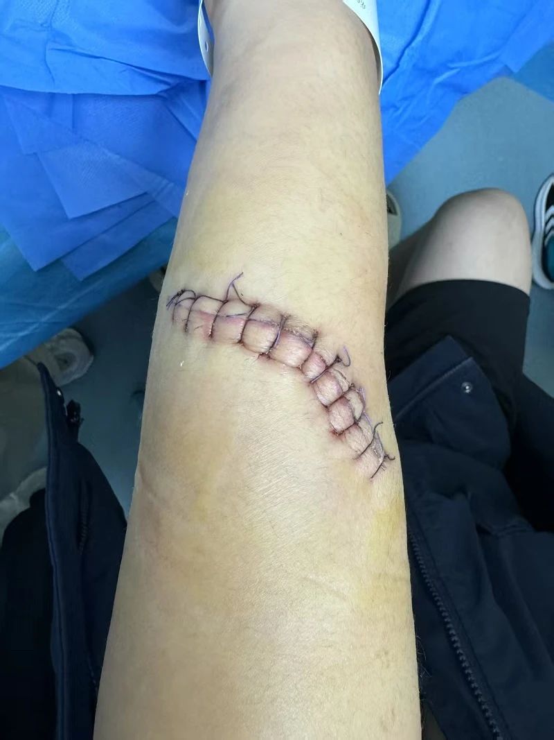 段鸿飞为避免双方冲突进一步升级,用身体阻挡在梁某和朱某中间,将两人隔开,但情绪激动的梁某不顾劝阻,伸手拿起一旁案板上的菜刀,朝着朱某所在的方向的挥舞,菜刀砍在了段鸿飞胳膊上。经医院诊断,段鸿飞为“上肢开放性伤口”“前臂伸肌损伤”。