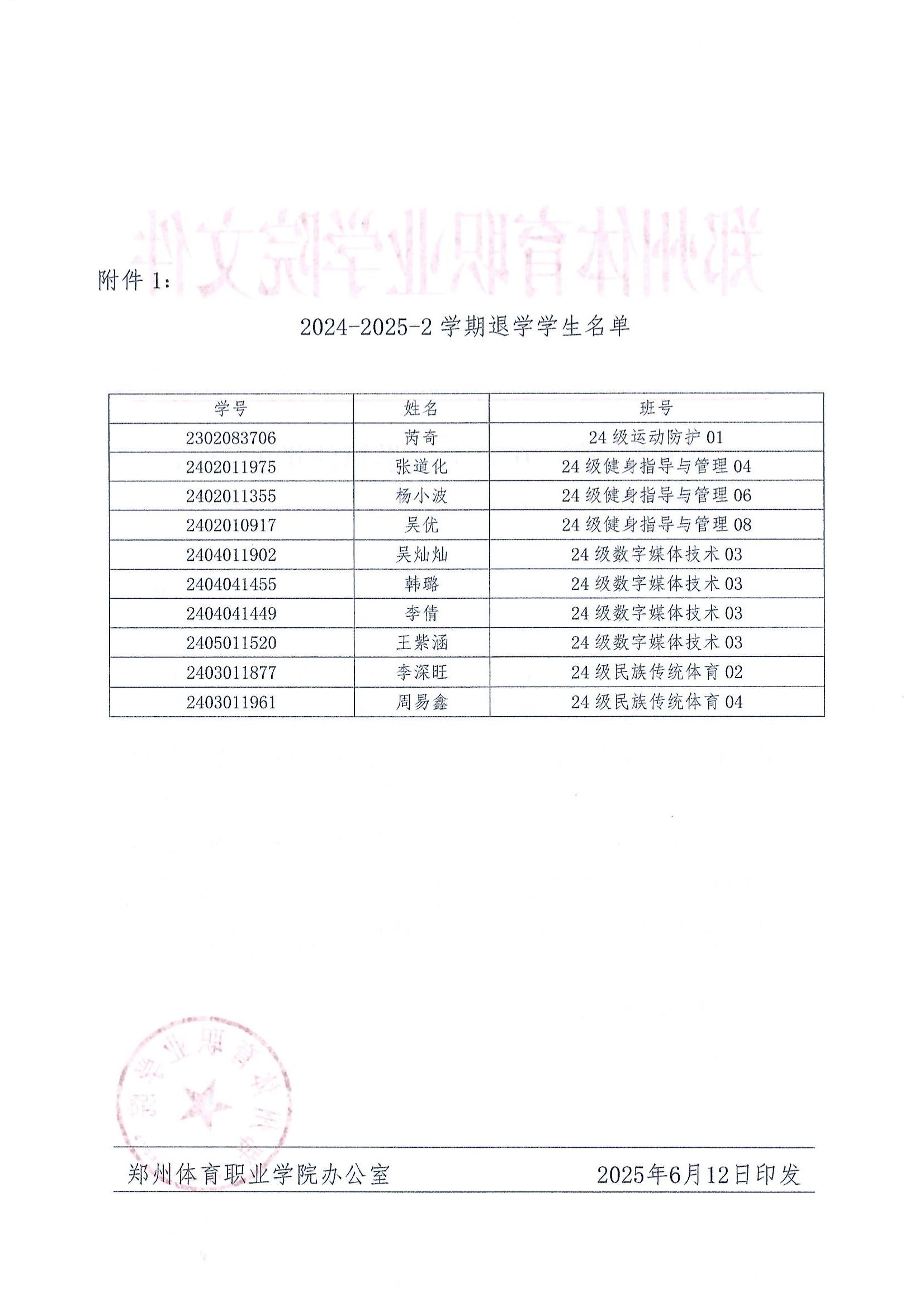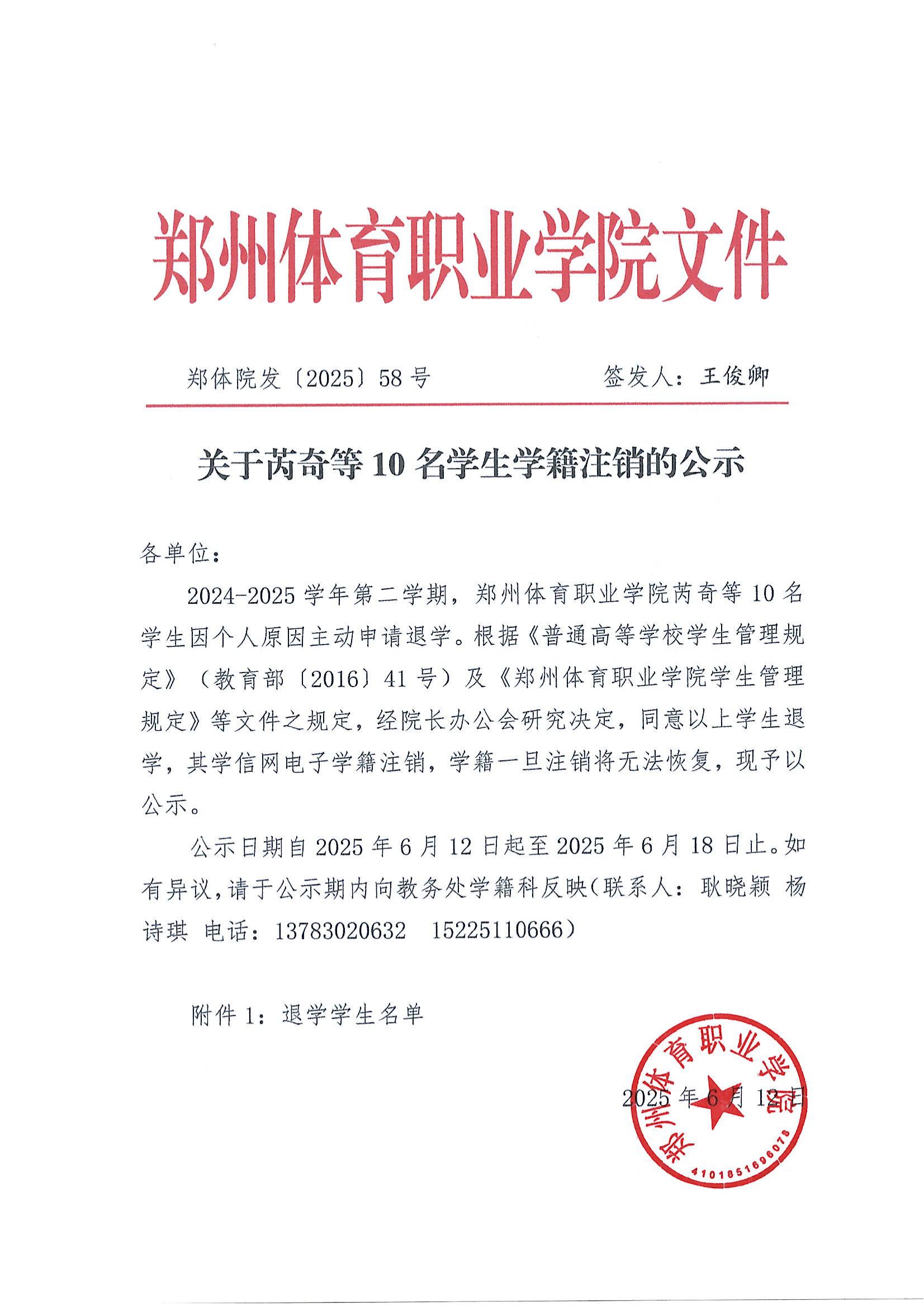 郑州体育职业学院关于芮奇等10名学生学籍注销的公示