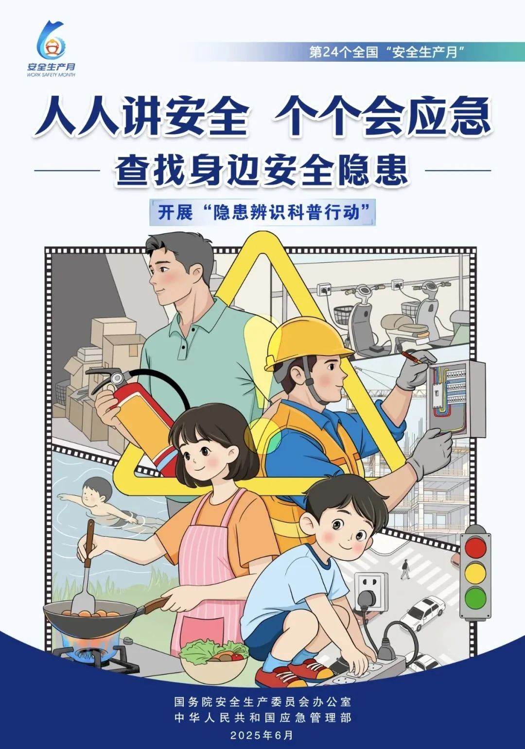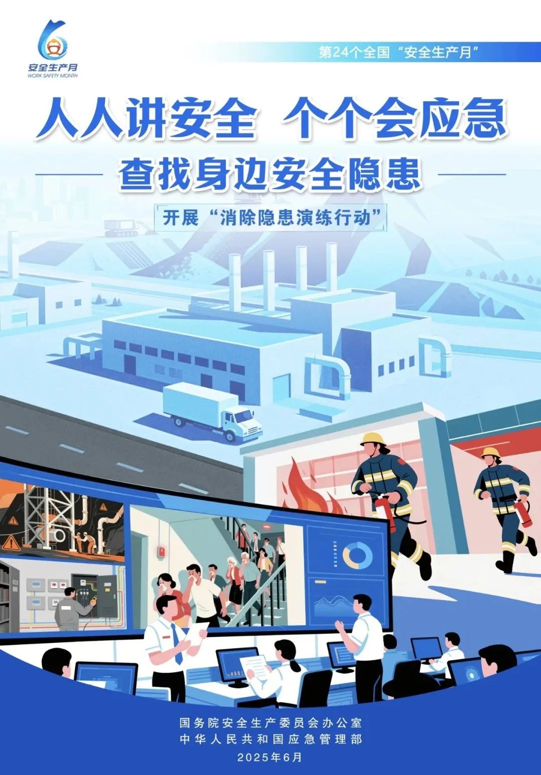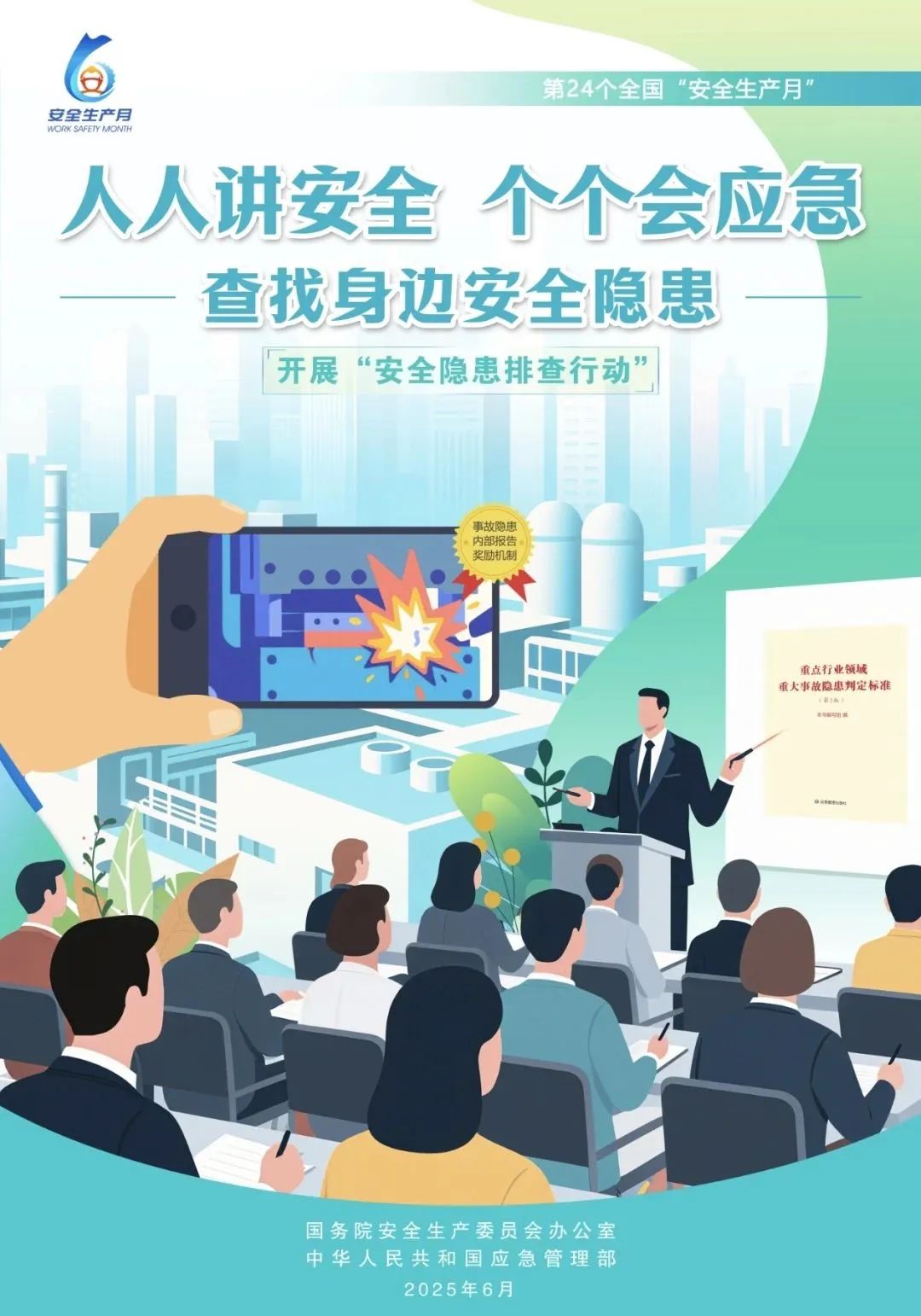 今年6月是第24个全国“安全生产月”,主题是“人人讲安全、个个会应急——查找身边安全隐患”。