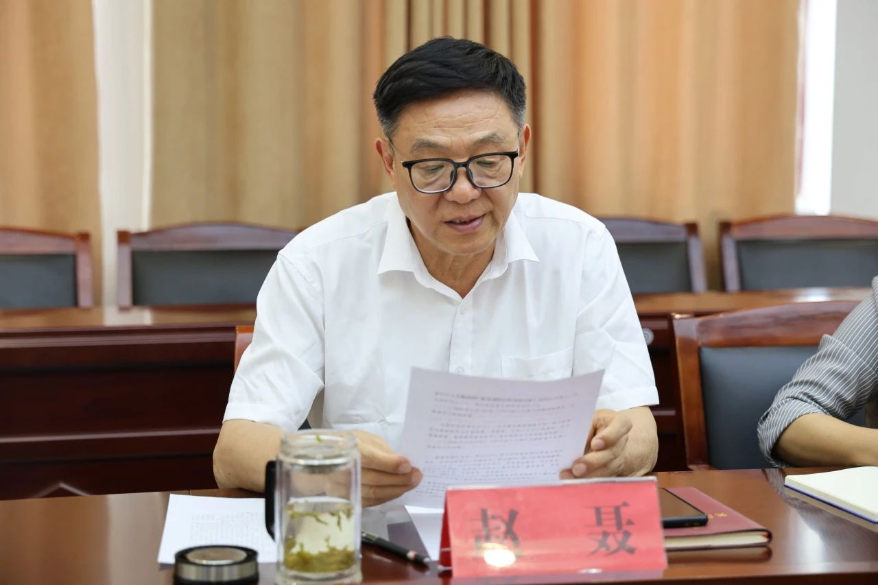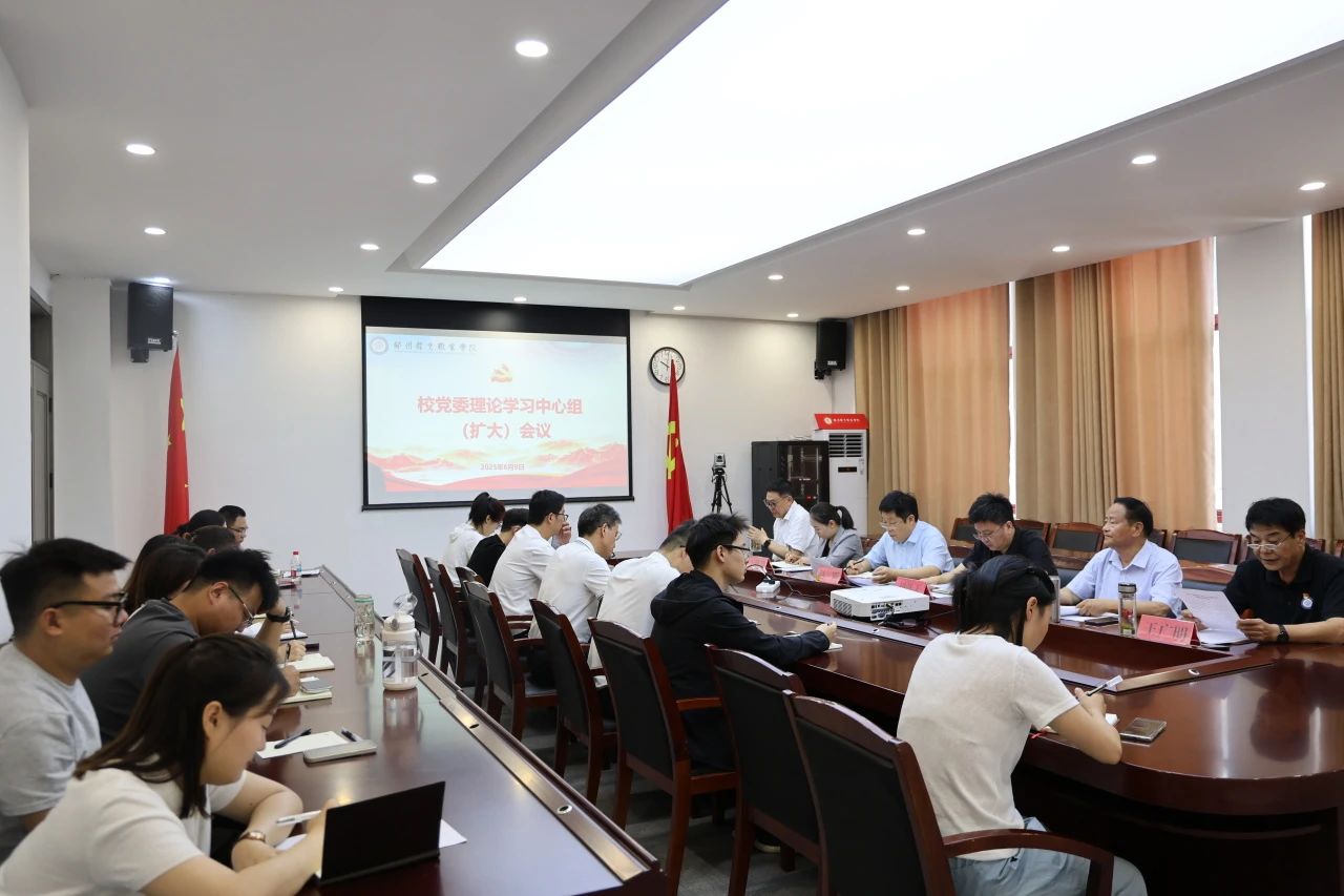 6月9日上午,我校在党建会议室召开校党委理论学习中心组(扩大)会议,校党委班子成员和各支部书记、支部委员以及各部门主要负责同志参会,校党委书记赵昕主持会议。
