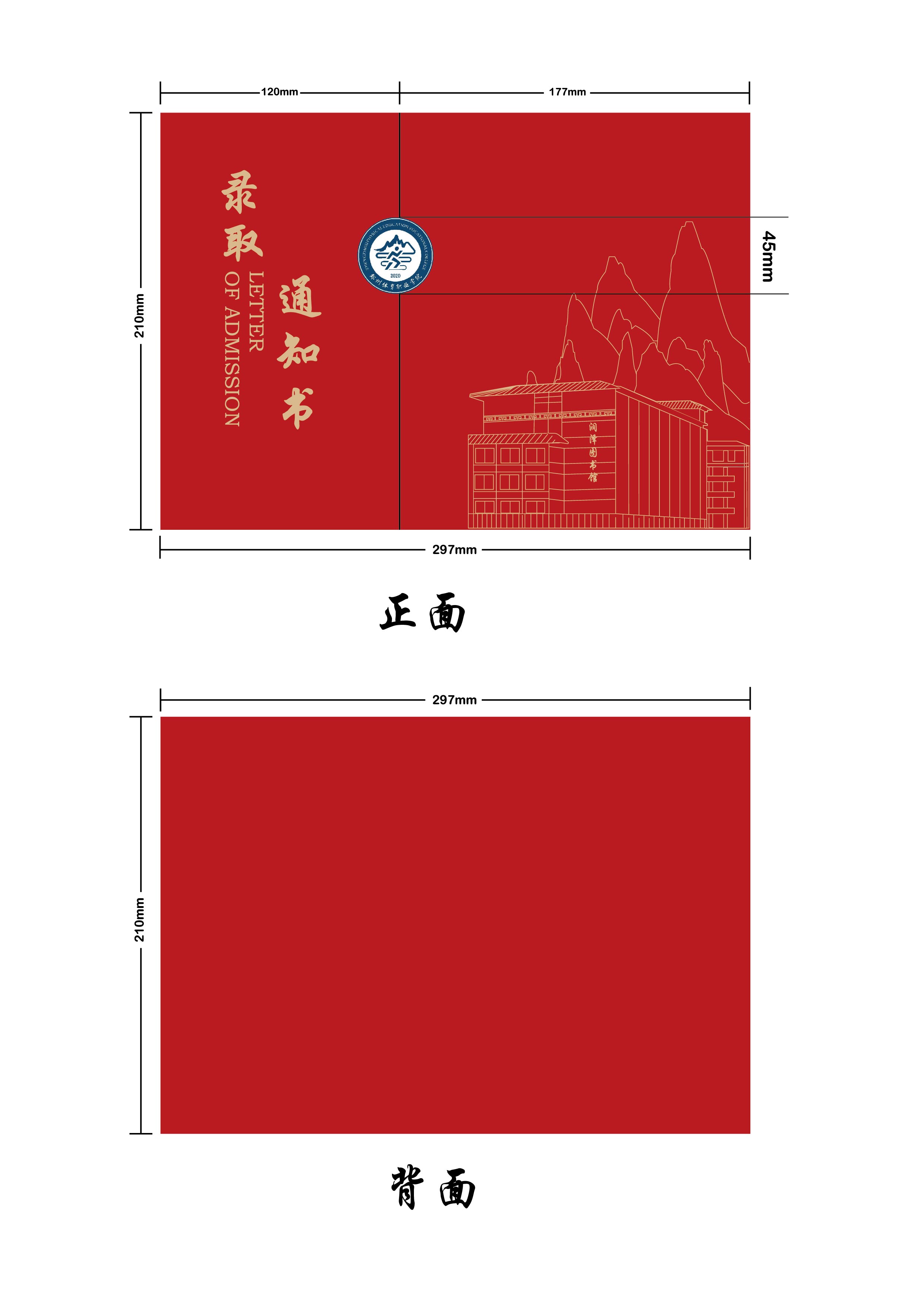 2025届录取通知书,以红底为主色调,校徽、建筑图案与“录取通知书”字样相衬,简约中藏方寸匠心。它是校园递出的第一张名片,将对新生的殷切期盼融入设计,以庄重模样,成为专属校园初印象,开启逐梦新篇