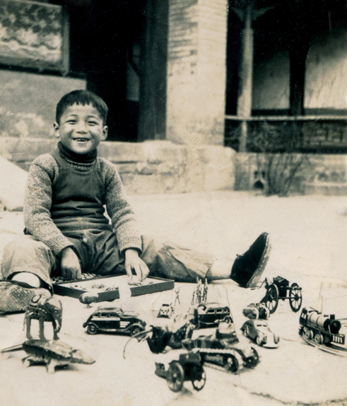 青少年时期的顾诵芬手持自己做的航模。(资料图片)