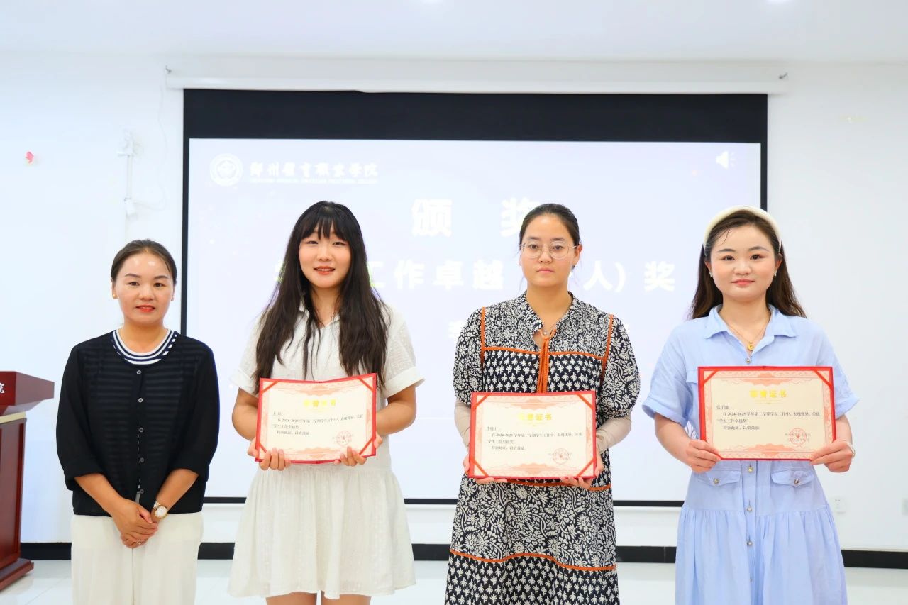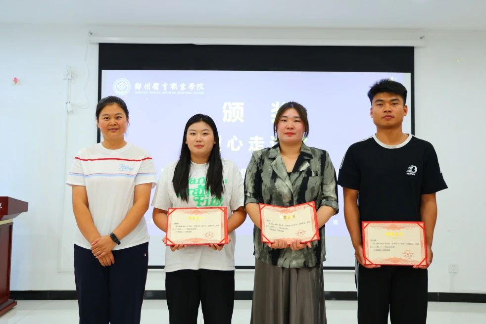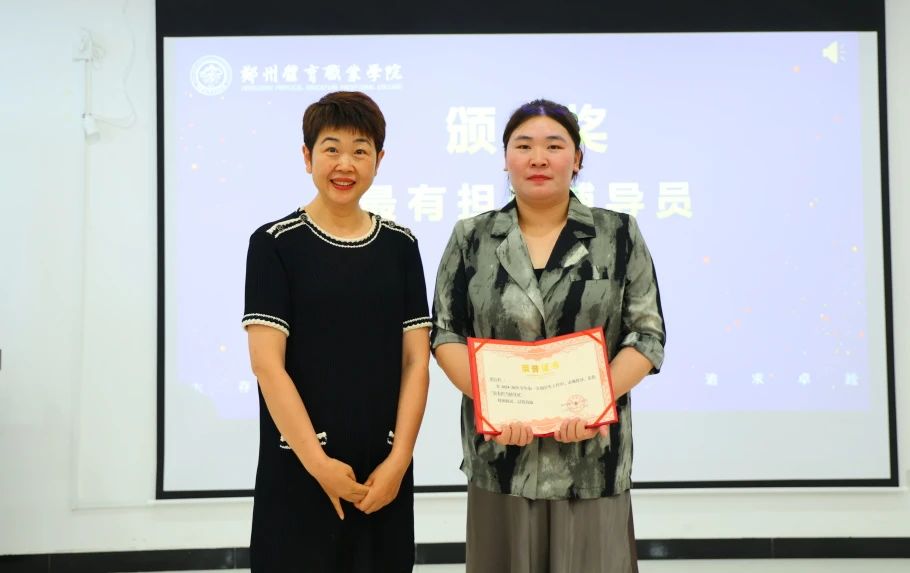 理事长孟凡叶为【最有担当辅导员奖】颁发荣誉证书