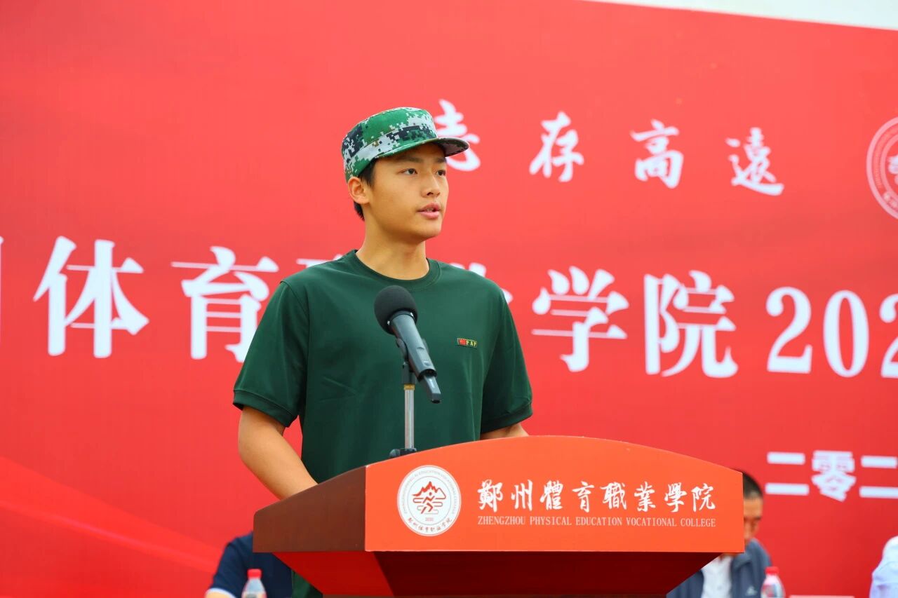 25级武教06班廖文哲代表全体2025级新生庄严承诺:将以最饱满的热情、最昂扬的斗志投入军训,坚决服从教官指令、严格遵守军训纪律,不怕苦、不怕累,用坚持与毅力展现郑体学子的青春风采,以优异的军训成果为大学生活写下精彩开篇。