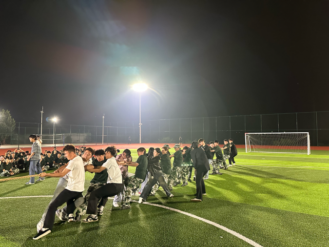 为丰富新生军训生活,锤炼团队协作精神,9月12日晚,郑州体育职业学院旅游学院于南校区操场成功举办新生军训拔河活动。夜幕之下,操场灯火通明,青春的热烈与秋夜的沉静交相辉映,为军训时光注入了活力与深意。参加本次活动的有旅游学院新生辅导员、新生班助以及25级全体新生。