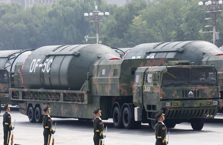 9月3日,纪念中国人民抗日战争暨世界反法西斯战争胜利80周年大会在北京隆重举行。这是核导弹第二方队接受检阅。新华社记者 潘昱龙 摄