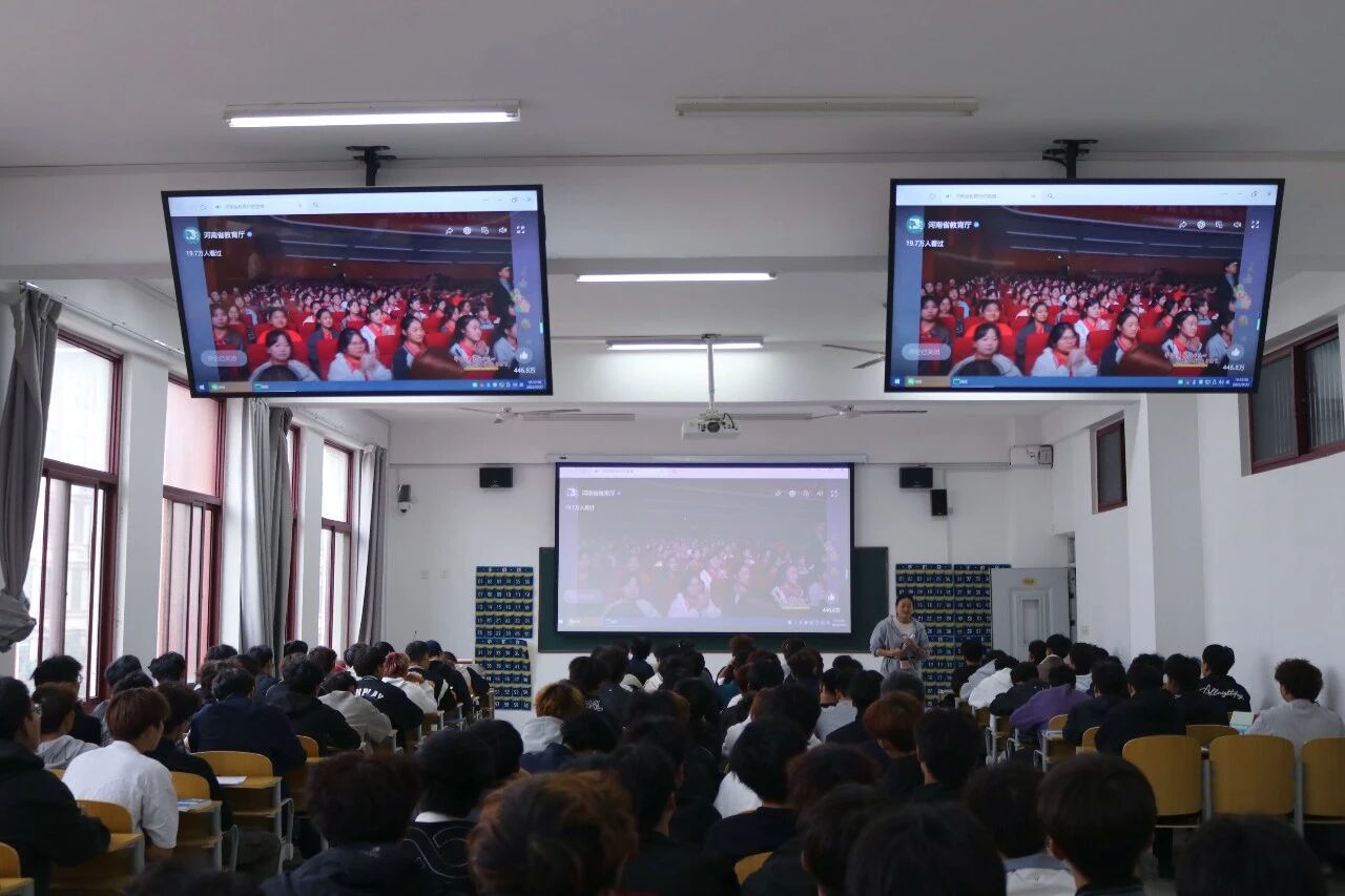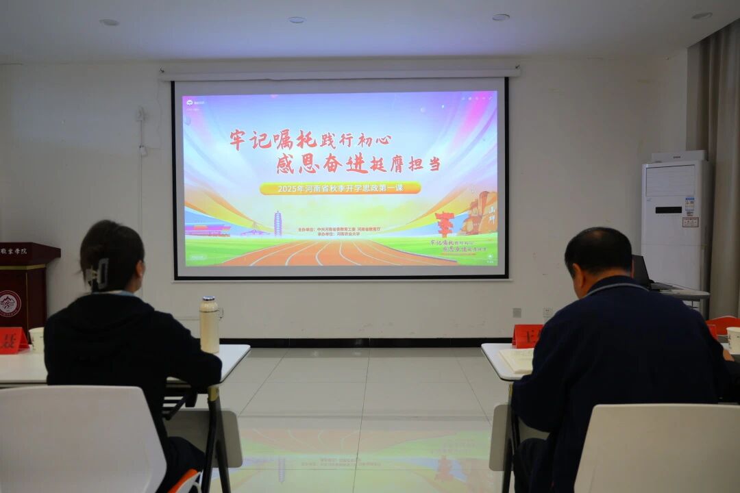 金秋送爽,学子归来。在“踔厉奋发赴新程,笃行不怠向未来”的开学氛围中,为深入推进习近平总书记在河南考察时的重要讲话精神“进教材、进课堂、进头脑”,将思政小课堂与社会大课堂紧密结合,引导学生扣好新学期的第一粒扣子,厚植家国情怀,涵养责任担当。9月22日上午10:00,郑州体育职业学院组织全校师生收看“牢记嘱托践行初心 感恩奋进挺膺担当”2025年河南省秋季开学思政第一课,让青春的思想在时代课堂中汲取奋进力量。