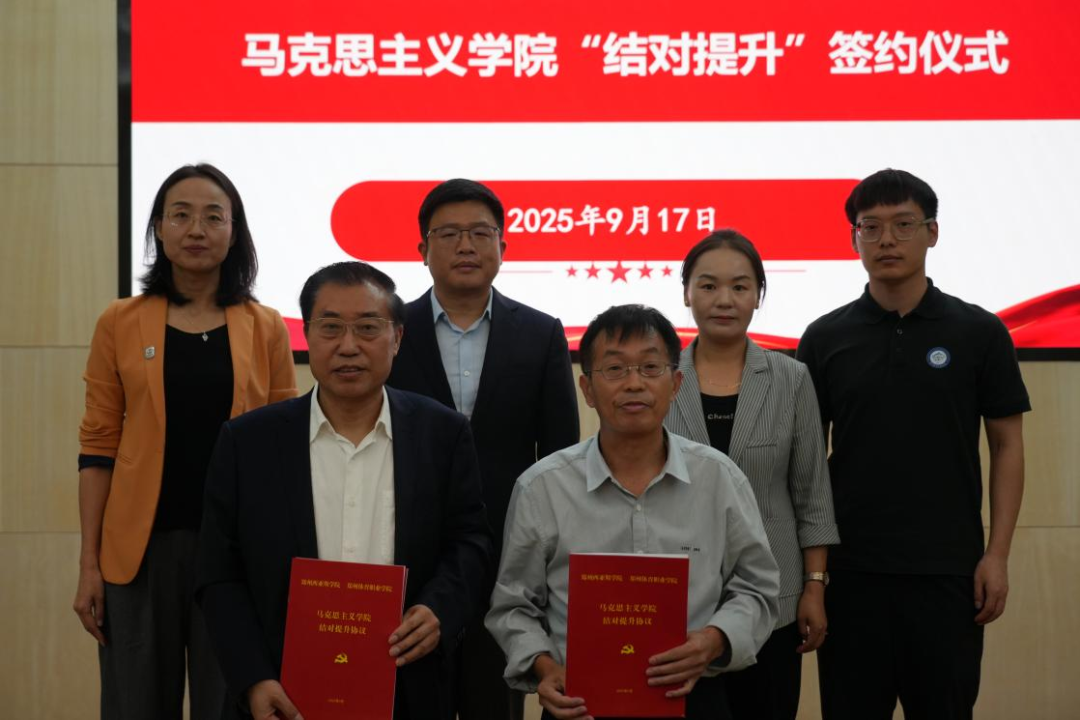 2025年9月17日,我校马克思主义学院与郑州西亚斯学院马克思主义学院“结对提升”签约仪式在郑州西亚斯学院行政楼宴会厅隆重举行。此次签约是两校深入贯彻落实习近平总书记关于思政课建设重要指示精神的具体实践,也是落实河南省委宣传部、省委教育工委、省教育厅《河南省高校马克思主义学院结对提升工作方案》要求的重要举措,旨在通过资源共享、优势互补,推动两校思政课内涵式发展,为培养担当民族复兴大任的时代新人提供坚实支撑。