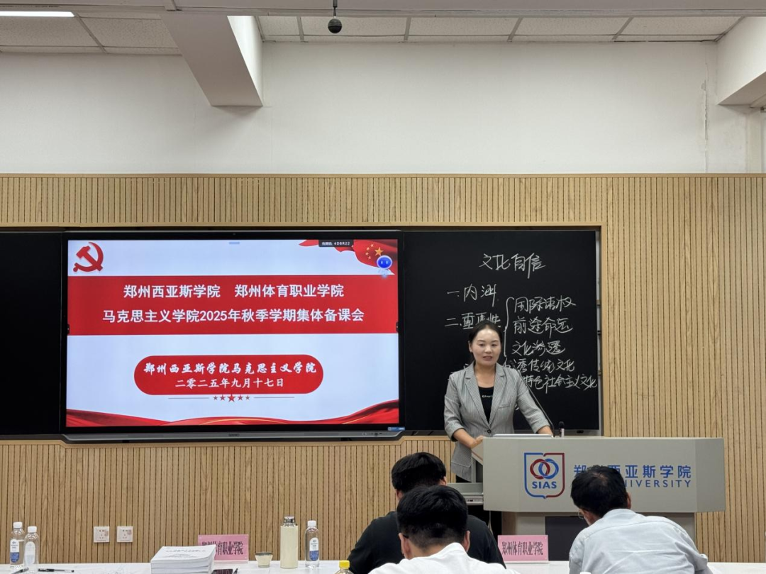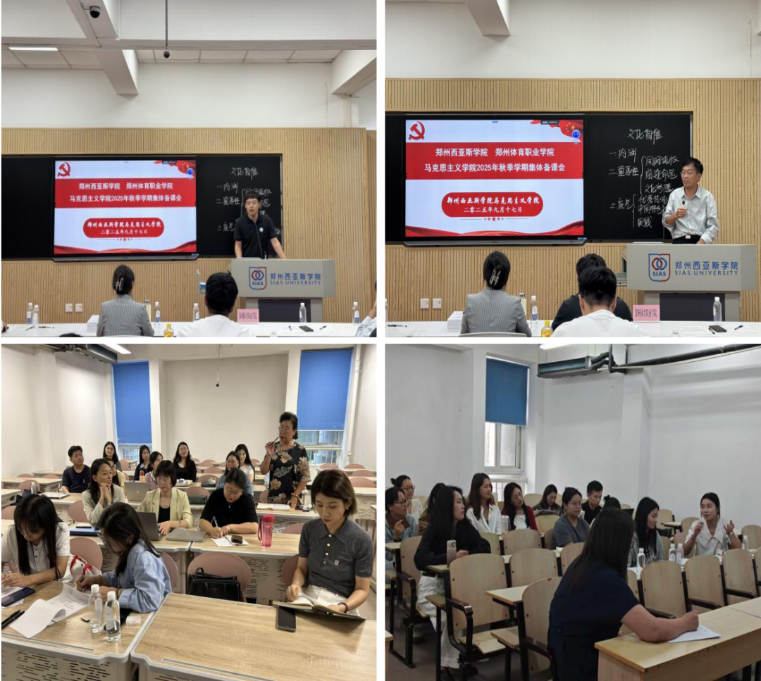郑州体育职业学院党委副书记、纪委书记王晓慧,马克思主义学院院长张泽民,教务处副处长黄文龙以及教研室主任和教师代表等11人,郑州西亚斯马克思学院院长郭学德,党总支副书记张前及全体思政课教师参与了集中集体备课会。