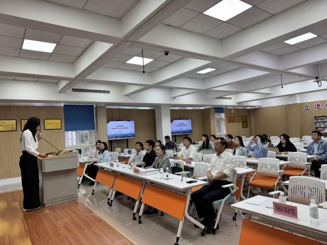 郑州体育职业学院马克思主义学院“新思想”教研室主任徐婧圆在“新思想”课程集体备课会上以“实现中华民族伟大复兴的中国梦”为主题,进行了说课和教学展示观摩。