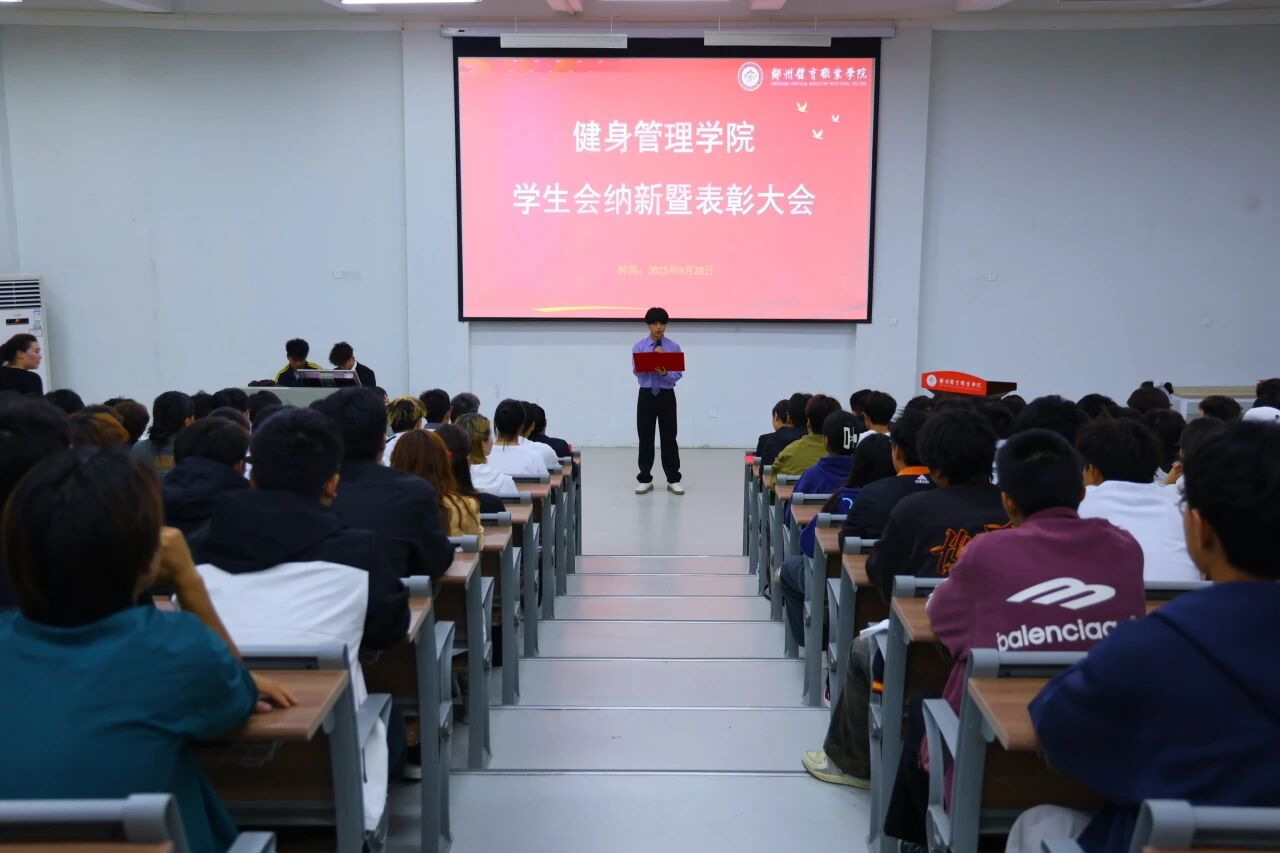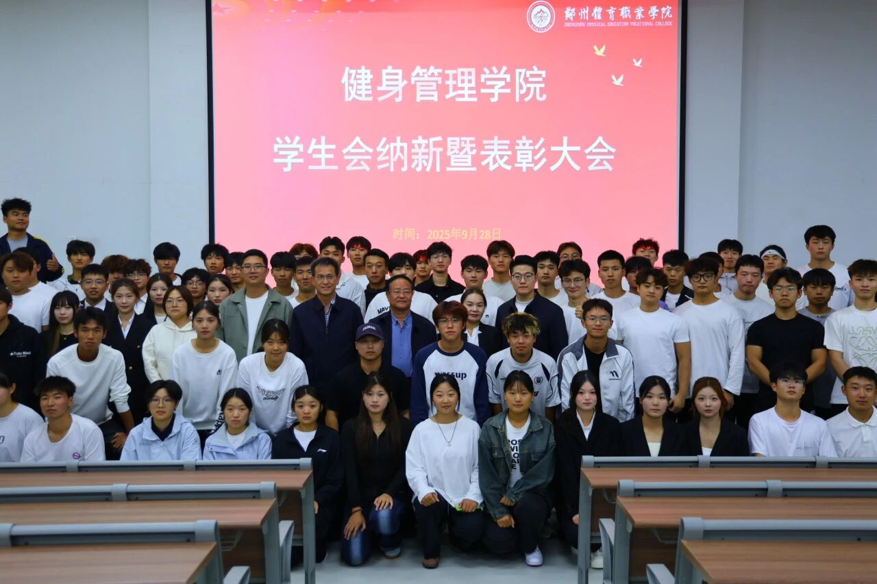 金秋九月,丹桂飘香。在全院师生的共同期待与见证下,郑州体育职业学院健身管理学院学生会纳新暨表彰大会于2025年9月28日在东阶梯教室圆满落下帷幕。出席本次大会的领导有校党委副书记、纪委书记王晓慧,副校长王俊卿,学生处处长秦明山,健身管理学院院长焦豪琦,安全处、督察处副处长罗雅灯,校团委负责人高文翠,健身管理学院教研室主任姬恩惠,健身管理学院团总支书记祁钰杉。本次大会不仅为学生会注入了新鲜血液,更以表彰先进树立榜样,凝聚起全院学子奋进向上的青春力量。
