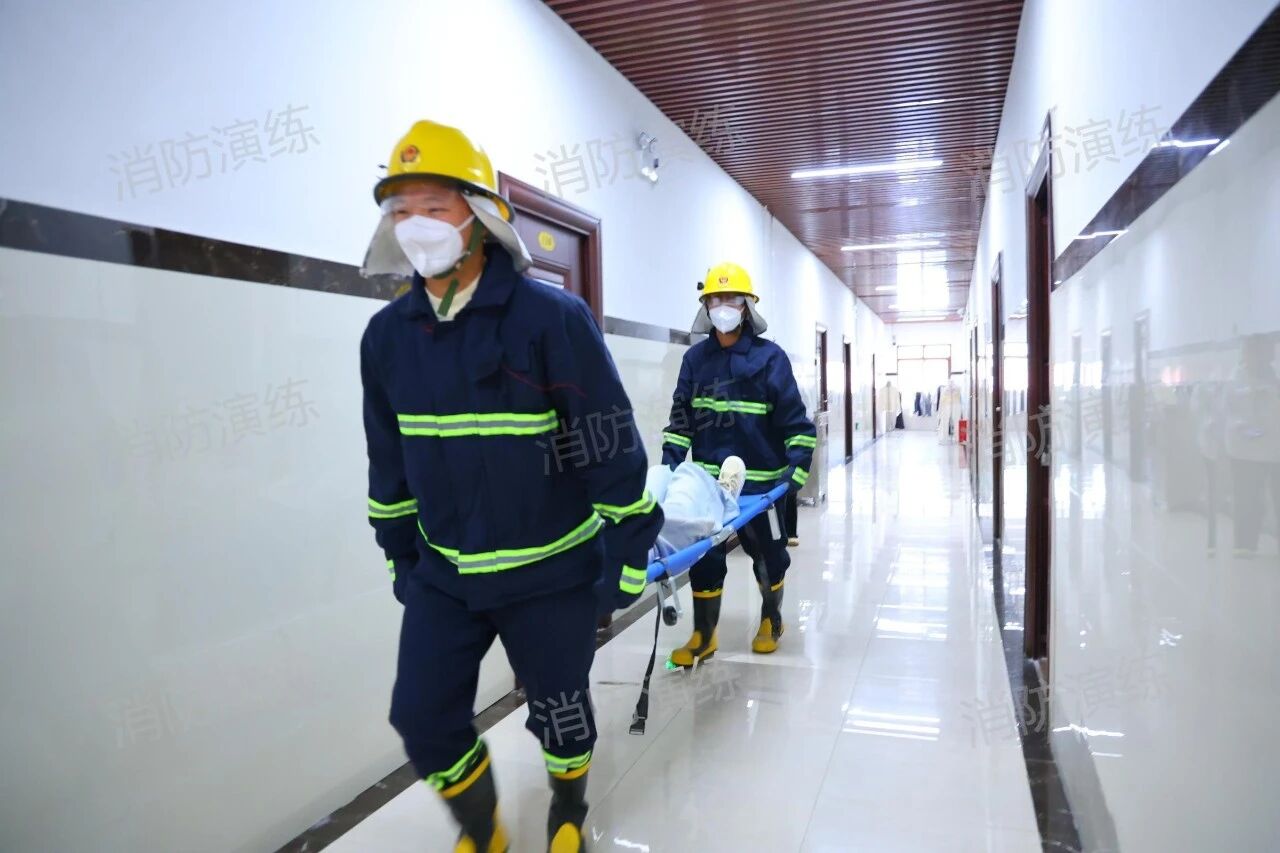 同时,学校微型消防站队员迅速携带消防器材赶赴“火场”,展开模拟灭火和搜救行动。整个演练环节紧凑、衔接顺畅,从警报响起至全体人员安全撤离完毕,仅用时1分钟,充分展现了师生良好的应急反应能力和协同配合水平。