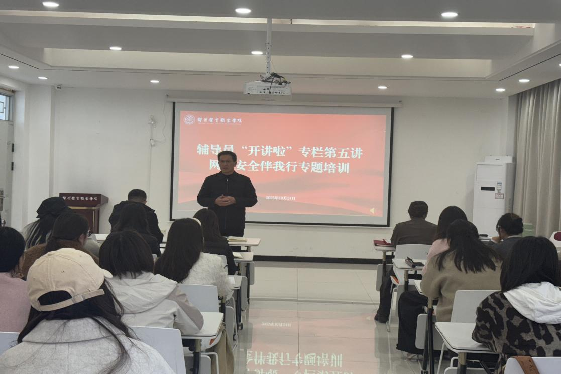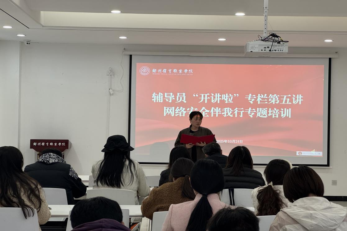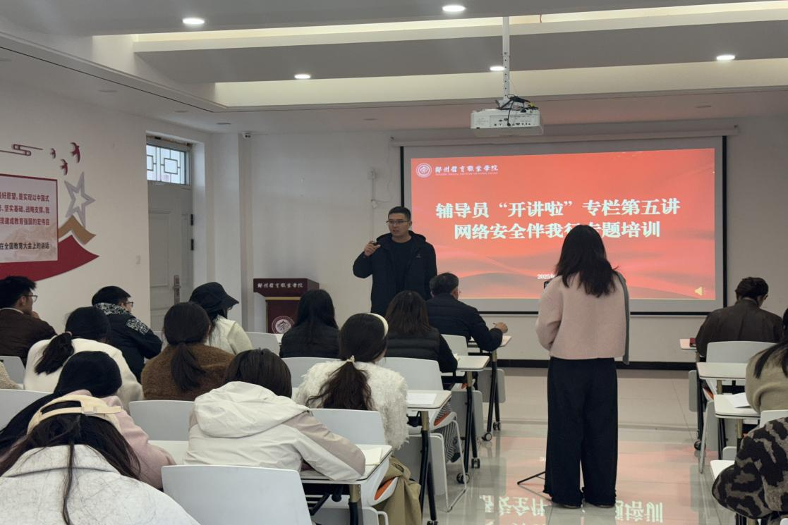 为进一步提升辅导员网络安全教育能力,强化学生安全防护意识,2025年10月25日上午,郑州体育职业学院全体辅导员参与“辅导员开讲啦”第五讲专题培训。本次培训由学生处赵雅老师主持,武术教育学院辅导员王子菡主讲,围绕学生网络安全防护展开深度讲解。