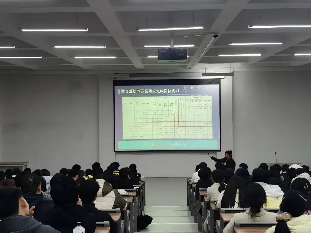 作为本次宣讲会的主讲人,宋俊亚主任为同学们带来了一场详实而富有指导意义的分享。她没有停留在简单的专业介绍,而是从行业现状、企业需求、岗位技能等实战角度出发,深入剖析了各专业对应的实习方向与职业发展路径。宋主任详细讲解了实习的政策要求、时间安排、任务目标以及注意事项,帮助同学们将课堂理论与未来工作实践连接起来,引导大家思考如何选择适合自己的实习岗位,为职业生涯奠定第一块坚实的基石。