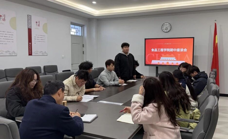 为进一步深化教育教学改革,提升人才培养质量,倾听学生心声。近日,食品工程学院于二楼第一会议室成功举办了“食品工程学院期中座谈会”。本次座谈会分为两个阶段,第一阶段院长与学生的深切交流;第二阶段任课老师与学生沟通互动。食品工程学院院长赵金海、教研室主任宋俊亚、团总支栗亚萍、全体辅导员、任课老师以及来自各年级不同班级的学生代表齐聚一堂,围绕课程设置、教学内容与方法、实践教学等核心议题,进行了深入、坦诚且富有建设性的交流。