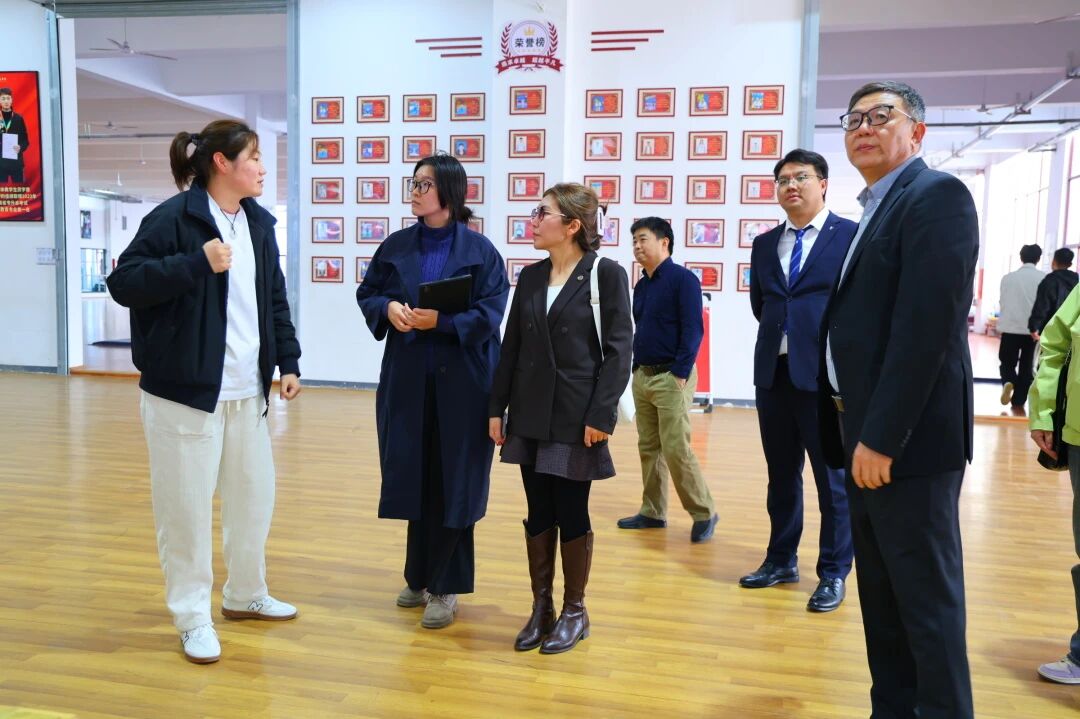 座谈会后,在校领导的陪同下,阿布迪别科娃副校长一行先后参观了体育馆、健身实训室、校史馆等地。通过实地考察主要教学与训练设施,深入了解我校的办学环境与硬件实力。
