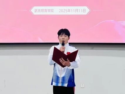 2024级民族传统体育05班刘泽申同学在发言中分享了参赛的感悟与收获。他动情地表示,武术嘉年华不仅是技艺的切磋,更是精神的洗礼,在活动过程中深刻的感受到“未曾学艺先学礼,未曾习武先习德”的武德内涵。他代表所有获奖同学向精心筹备的组委会、辛勤指导的教练老师以及并肩作战的同学们表达了诚挚谢意,并承诺将以此荣誉为新的起点,秉承“志存高远 追求卓越”的校训精神,在武道之路上继续砥砺前行。