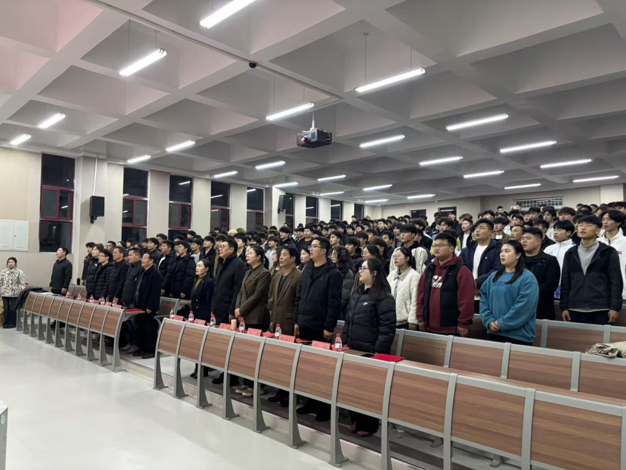 颁奖仪式在庄严的国歌声中拉开帷幕。校党委副书记、纪委书记王晓慧,副校长王俊卿,副校长赵聂,副校长冯丽锋,校长助理孙丽等校领导出席,与各职能部门,二级学院负责人,武术教育学院全体辅导员,技能课教师,以及获奖学生代表和2025级学生代表共同见证了这一荣耀时刻。
