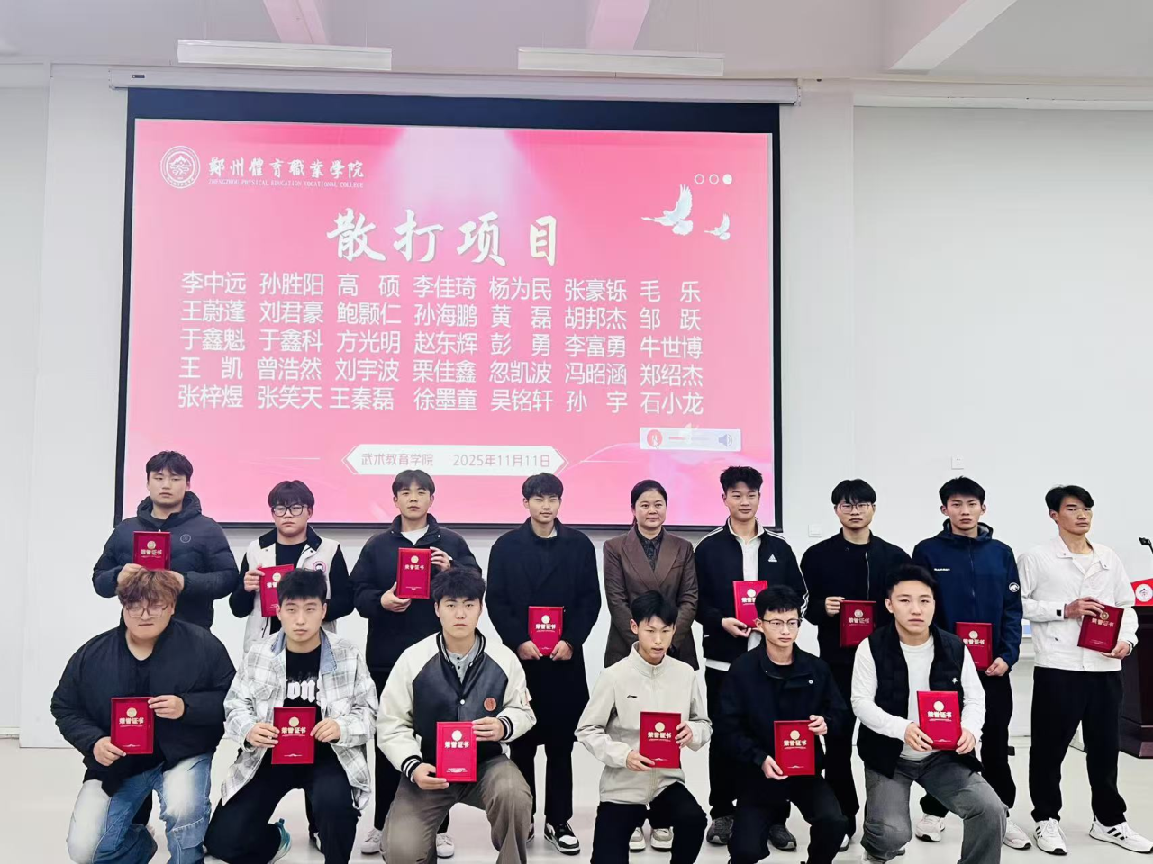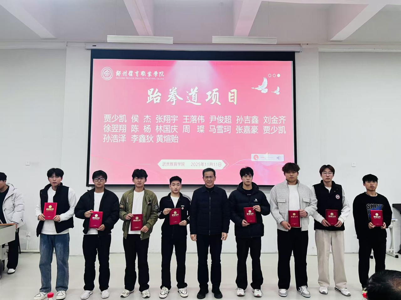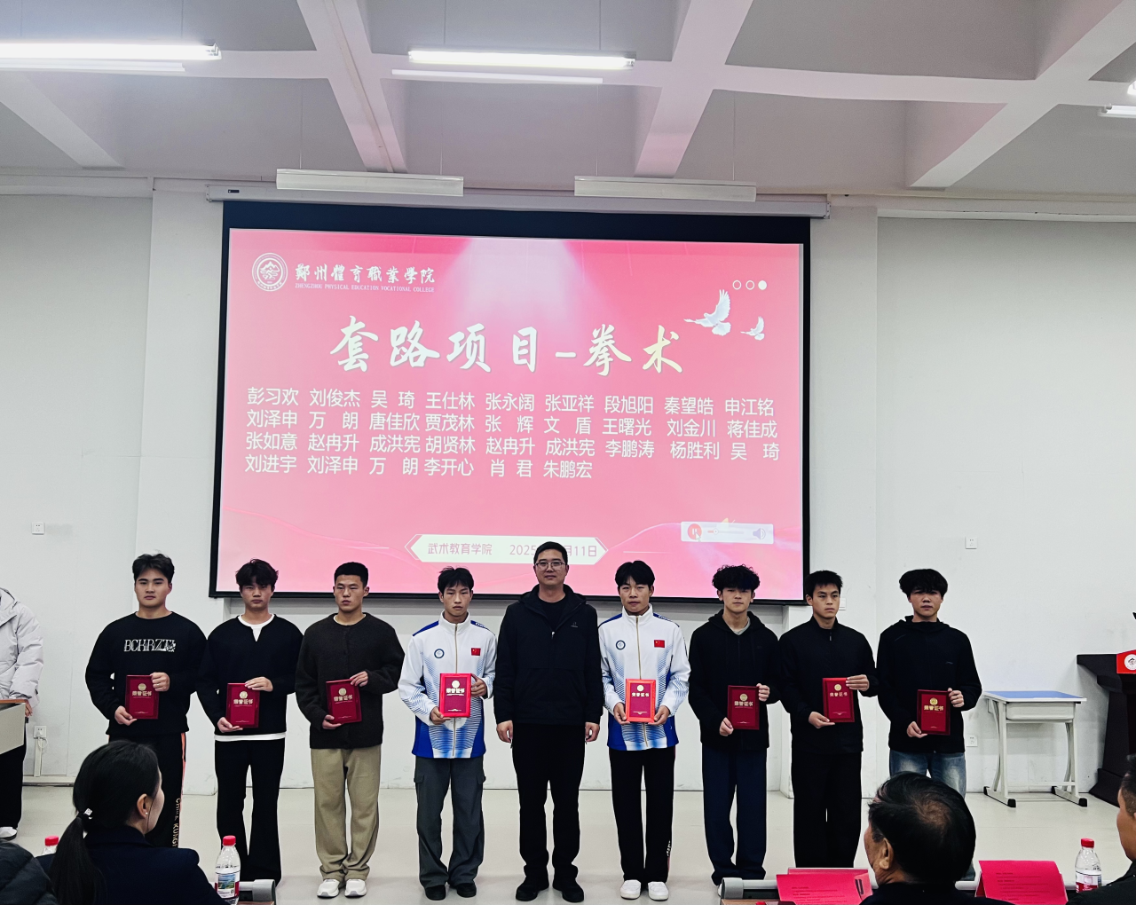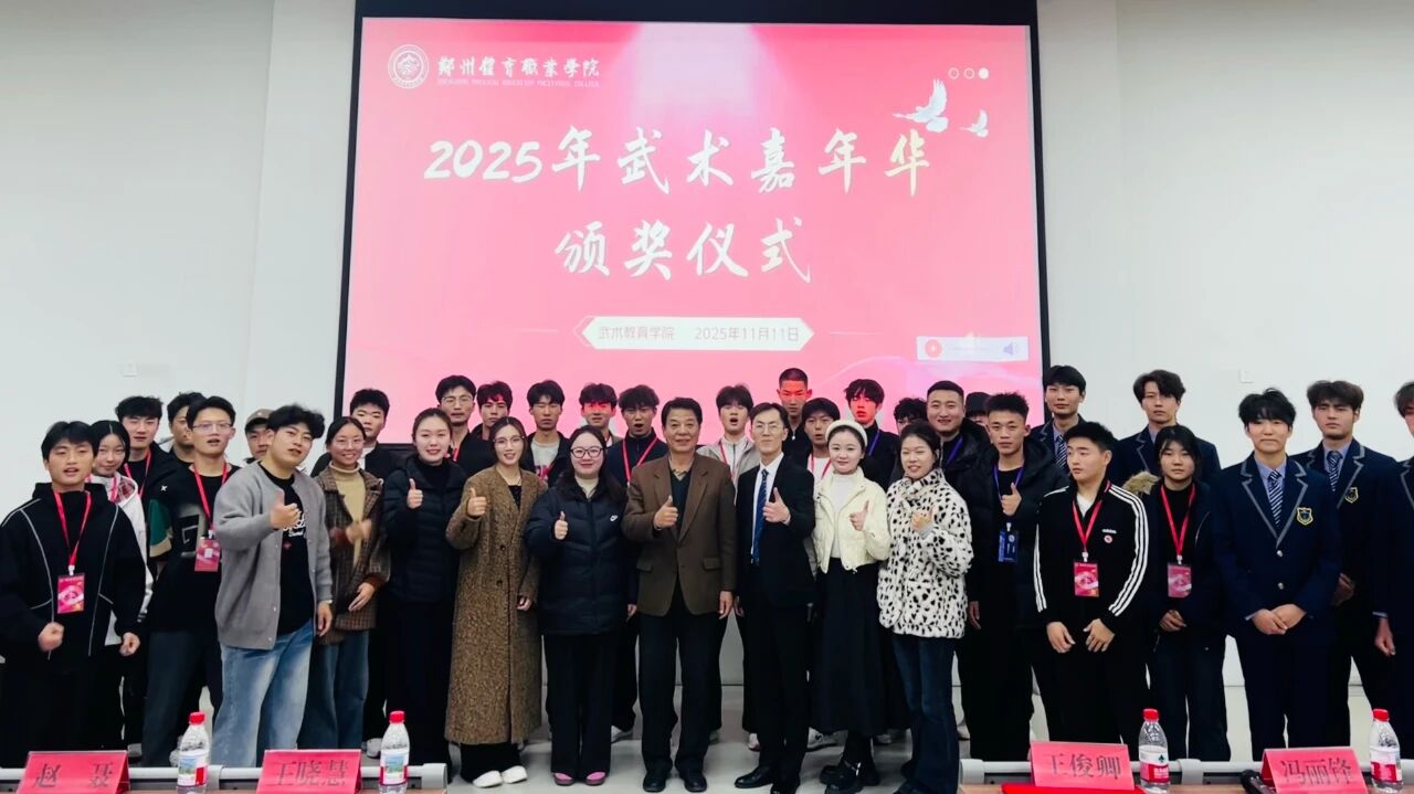 在隆重的气氛中,颁奖仪式圆满结束,与会领导、嘉宾与全体获奖学生合影留念,定格下这份属于郑州体育职业学院武术人的集体荣耀与美好回忆。