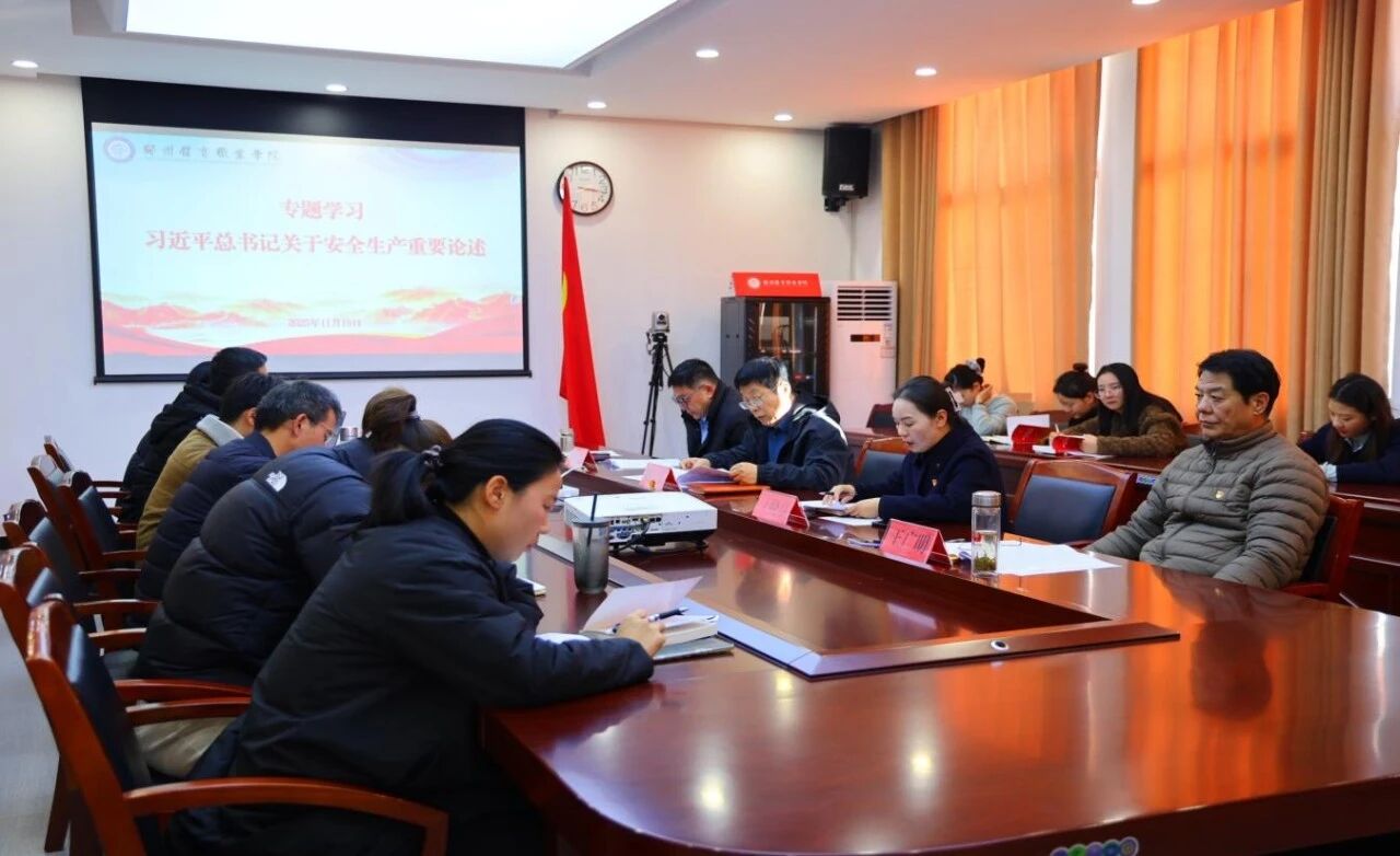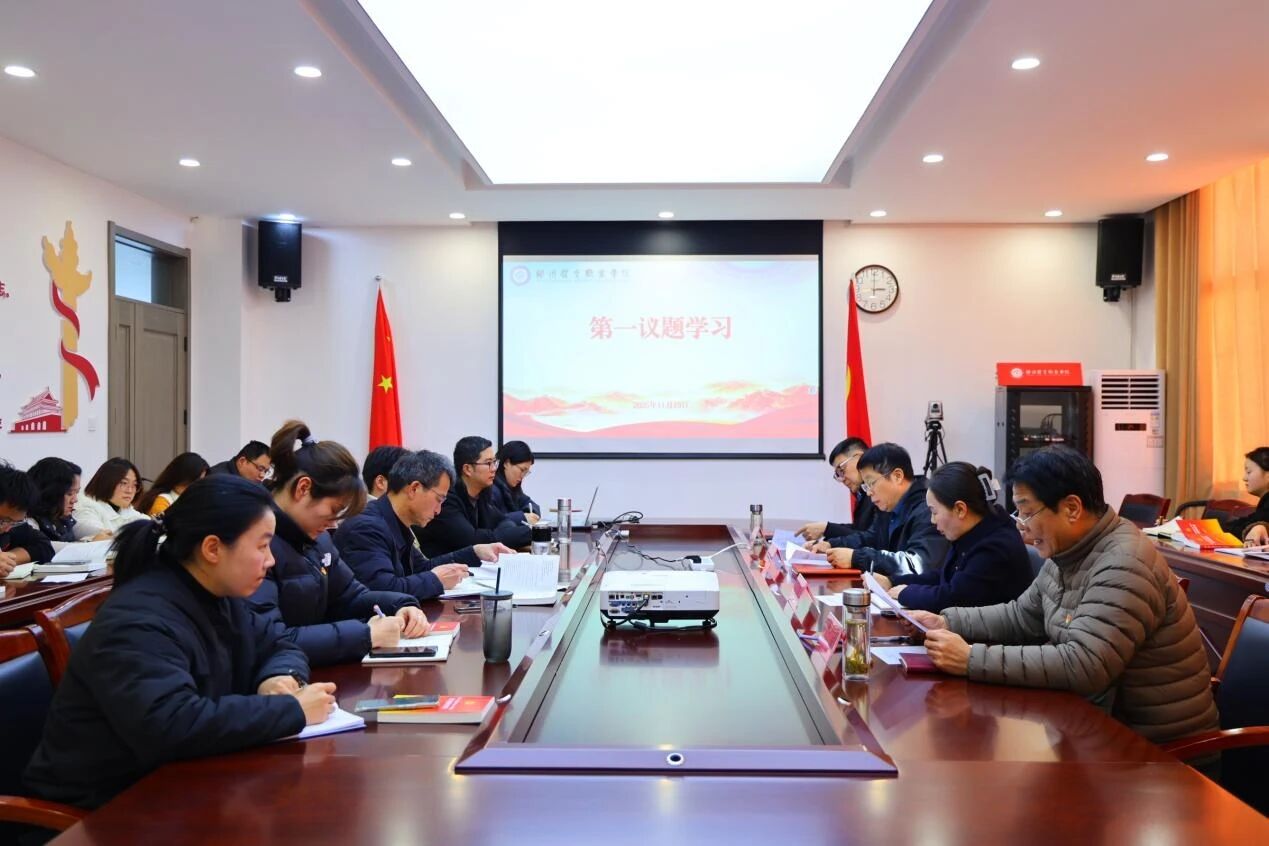 为深化思想认识、凝聚发展共识、筑牢安全防线,2025年11月19日下午,我校召开2025年11月份党委理论学习中心组(扩大)会议。校党委班子成员、中层以上党员干部及各部门主要负责同志参会,会议围绕深入学习贯彻习近平总书记系列重要讲话和重要论述精神、对接“十五五”规划谋篇布局、压实校园安全生产责任等核心任务,以理论武装引领办学实践,为学校高质量发展筑牢思想根基与安全屏障。