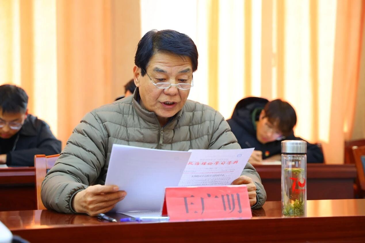 党委委员王广明同志领学习近平总书记在广东考察时的重要讲话,带领全体参会人员深刻领会讲话蕴含的战略思维与实践要求;