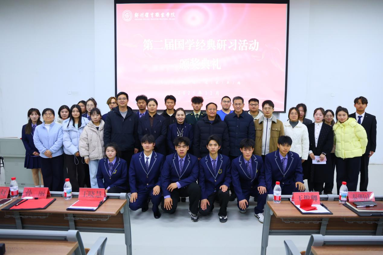 为持续推进文化育人,深化学生对中华优秀传统文化的理解与认同。近日,郑州体育职业学院第二届“品国学经典 育时代新人”国学经典研习活动颁奖典礼在东阶梯教室隆重举行。校党委副书记、纪委书记王晓慧,副校长王俊卿,校长助理孙丽,学生处处长秦明山,安全处、督察处副处长罗雅灯及马克思主义学院、基础部全体教师、各年级学生代表参加本次典礼,共同见证了一场诗意盎然、文武交融的文化盛宴。
