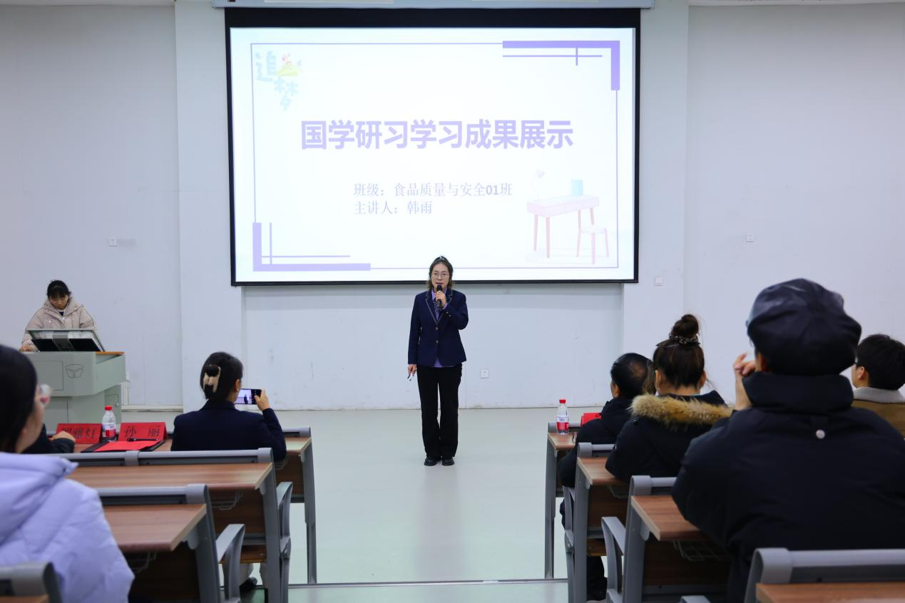 在成果展示环节,学生代表韩雨、孙瑞彬、方秋富三位同学依次上台,分别从经典研读的心得感悟、知行合一的实践体验等不同角度,分享了他们在国学之旅中的收获与成长。